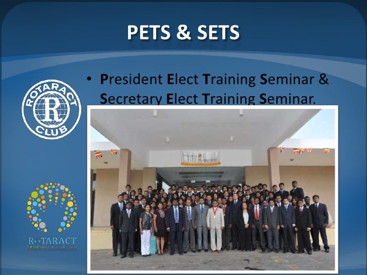 B. President Elect Training Seminar (PETS) -- Prepare for PETS and adjust my plan Rotaract Club(s) RYLA. Early Act First Knight. Literacy/Numeracy. Read to Me. Dictionaries. Club Planning Guide ... Retrieve Doc